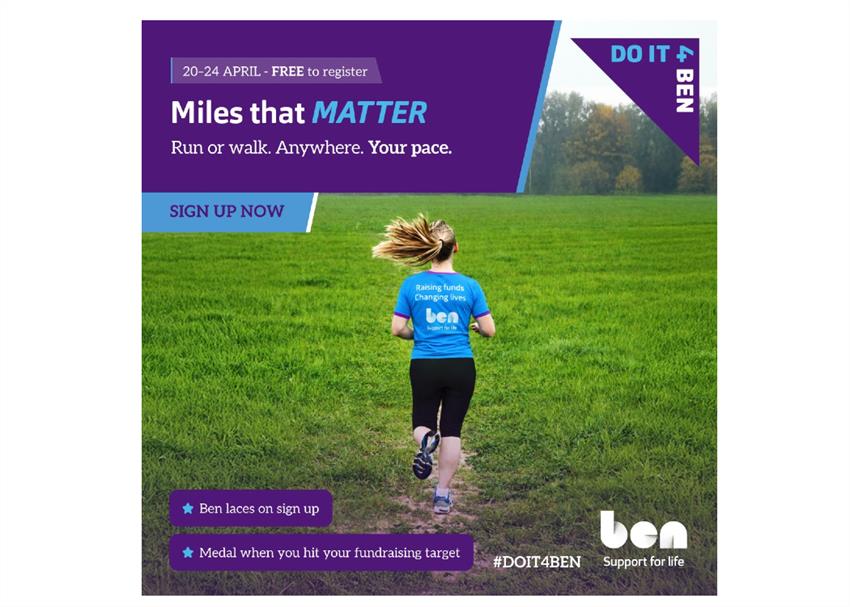 This April, Ben, the automotive industry charity, is inviting individuals and teams from across the sector to go the distance for those who are struggling or in crisis. Ben is calling on people across the automotive sector to step up, get active, and make every mile count with its new virtual challenge event, Miles that matter.Miles that matter is a flexible running and walking challenge that encourages participants to set their own distance goal and complete it between 20th - 24th April (or any time that month), while raising vital funds. Whether it’s a daily 5k, a weekend-long run, or a collective team target, every mile completed will help Ben continue its life-changing and life-saving work supporting automotive people.