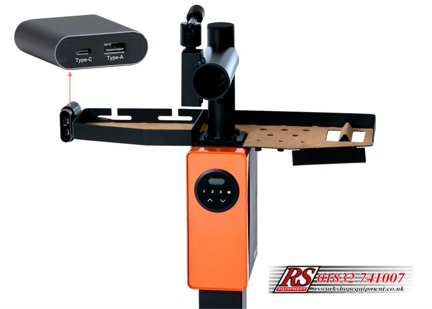 Supplied with a 6-foot (1.8 m) cable, it offers maximum flexibility, allowing the mechanic to reach components anywhere on the bike without hassle. For easy integration, the Rapid USB Charger mounts directly to the Remco Bike Lift column, or conveniently to the side of the Remco Integrated Tool Tray, keeping the workspace clean and organised.