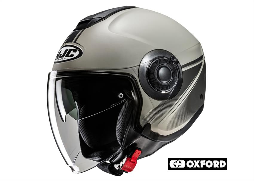 The HJC i40N from Oxford is a compact and stylish urban semi-jet helmet. Its advanced polycarbonate shell houses a lightweight and comfortable helmet; intelligent CAD design ensures a superior fit. A light smoke sunshield deploys quickly and easily, while its antibacterial cheek pads and head liner are removable and washable. Speaker pockets are provided for easy installation of Bluetooth comms, making the i40N the perfect urban helmet for day-to-day use.Key Features• Advanced Polycarbonate Composite Shell: lightweight, superior fit and comfort using advanced CAD technology