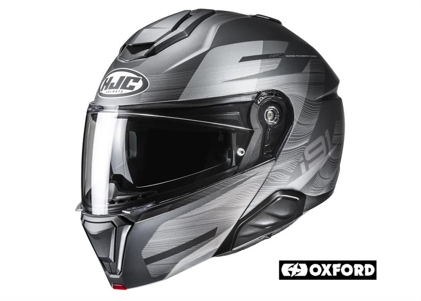 The new HJC I91 system helmet from Oxford is designed with touring and cruising riders in mind, offering a great mix of style and functionality. Wear it closed for a full-face lid, or flip the chinbar to create an open-face helmet.The helmet also has improved aerodynamic performance for a smoother and more stable ride, helping riders stay focused on their adventure. The new dynamic multi-step sun visor provides added convenience and improved visibility when dealing with varying light conditions. Additionally, the 3D contour design of the helmet ensures a comfortable and secure fit, even if you wear glasses. Plus, it includes reflective trimming for added safety on the road. Overall, this helmet combines performance, style, and safety for a fantastic riding experience.