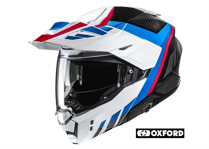 The new HJC i80 from Oxford is a system helmet designed for adventure riding, striking the perfect balance between safety, comfort and style. With an advanced polycarbonate composite shell, it offers both lightweight durability and effective impact protection.Combining the features of a full-face helmet and an open-face helmet, the chin bar can be flipped up to transform the helmet into a more open configuration. The rider can have the protection of a full-face helmet when the chin bar is down, and the convenience of an open-face style helmet when the chin bar is flipped up. The i80 is perfect for full adventure riding with the option to remove the peak visor for a more aerodynamic profile.