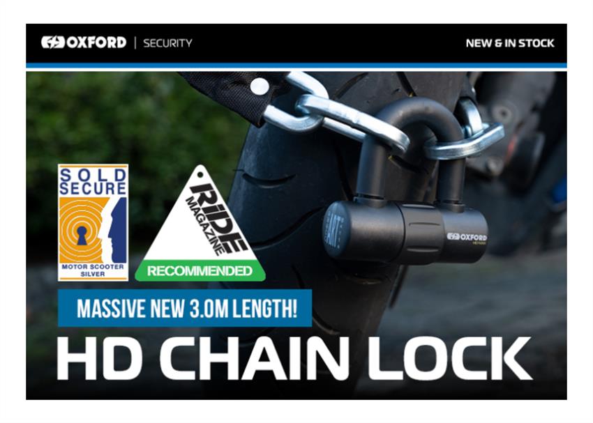 The popular Oxford HD chain lock is a premium quality mid-range lock. These chains offer an excellent combination of strength and convenience. Light enough to take with you but strong enough to give reassurance. It is perfect for small to medium motorcycles.The HD Chain Lock comes with three keys and key replacement service. On receipt of your chain lock, note your key number and keep in a safe place. In the unfortunate event that you lose all your keys, a new spare can be made up for you.