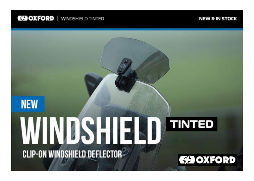 The Oxford Windshield is an acrylic visor which clips onto the main screen of the motorcycle and redirects airflow away from the rider to reduce buffeting.
