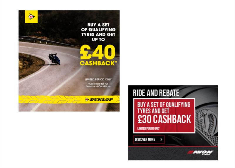 Dunlop and Avon have decades of heritage to bear in crafting tyres that deliver the value, confidence, styling and, above all, the performance to deliver the perfect ride. Riders seeking to get a new set of tyres for the new season can claim the following: