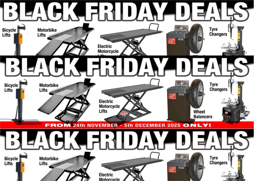 Whereas most companies are offering discounts and savings on ‘old stock’ or ‘slow moving items’, RS Workshop Equipment is giving you the opportunity to snap up some leading products from its wide range of quality equipment at very special BLACK FRIDAY PRICES. From Electrically Pperated Bicycle Lifts and associated accessories to Tyre Changers.