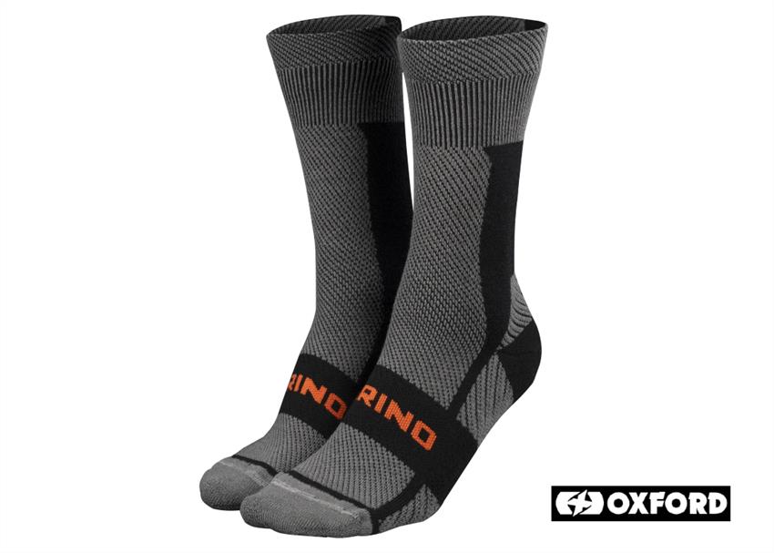 Designed for long-lasting comfort and performance, the OXFORD ATMOS HEATCORE Merino Socks keep feet dry, fresh, and supported on every ride. Constructed with highly moisture-wicking and breathable Merino wool, these socks regulate temperature and wick sweat away to ensure all-day comfort.Featuring a light compression fit at the arch and ankle, ATMOS HEATCORE Merino Socks provide enhanced circulation - helping to reduce cramp and fatigue during long rides. A terry knit at the toe adds cushioning and increased insulation, making them the perfect choice for endurance and performance.