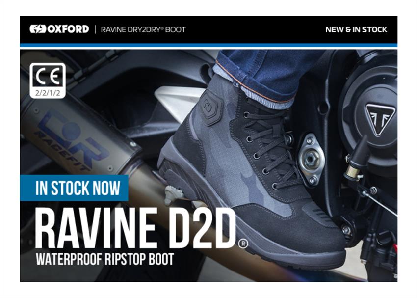 The Oxford Ravine boots feature a Dry2Dry® waterproof membrane, Quick-fit side zipper, highly abrasion-resistant ripstop upper and PU structural reinforcements throughout.It bridges the gap between high-spec motorcycle protection and all-day hiking comfort. With a rugged, high-traction sole and a durable ripstop/suede upper, it blends the best of a riding boot, high-top trainer and trail shoe.