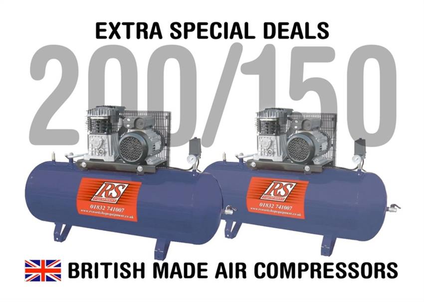 Special deals are currently available for the ultra reliable; British made, 3hp, 230v piston compressor with a choice of 150 or 200 litre receivers.